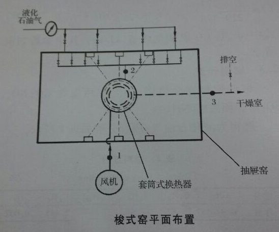 位于回轉窯冷空氣管道位置1開設Φ8毫米的測試孔,用標準畢托管測量助燃空氣流量,查看鼓風機頻率顯示。預熱空氣管道2開設Φ8毫米的測試孔,用鉑電阻溫度計量空氣預熱溫度。而回轉窯的中溫煙氣管道位置3開設兩個Φ8毫米的測試孔,用鉑電阻溫度計測量煙氣離窯溫度,用testo360煙氣成分檢測儀在線監(jiān)測煙氣內的一氧化碳和氧氣濃度。用鉑電阻溫度計測量車間環(huán)境溫度。回轉窯的燃料供應管上安裝渦街流量計測試液化石油氣的具體流量,安裝壓力表對液化石油氣的壓力進行測量。窯溫借助抽屜窯配套的溫度自動檢測及顯示系統(tǒng)測試。