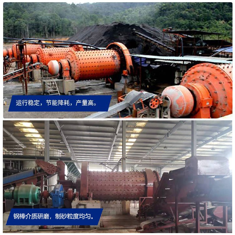 二、出料均勻產(chǎn)量高——采用先進(jìn)的可控進(jìn)出料棒磨機(jī)技術(shù),結(jié)合實(shí)際用戶(hù)的研磨物料配用合適的研磨體,一改傳統(tǒng)球磨機(jī)的面接觸為線(xiàn)接觸,使制砂機(jī)的出料粒度更為均勻、產(chǎn)量更高, 適用于不同硬度(莫氏硬度 5.5 ~ 12 )的礦石。